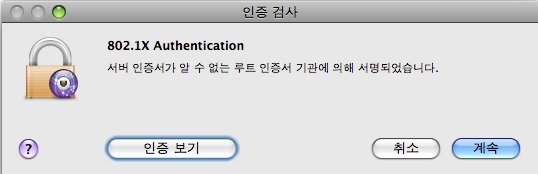 6. <그림6> 의 인증 검사창이 나오면 [계속]을 클릭합니다.