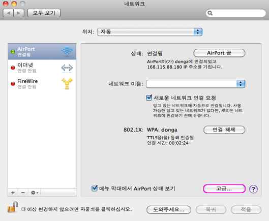 “맥북 무선랜 설정” 방법 안내